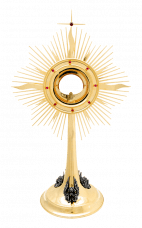 Monstrancja wykonana jest z mosiądzu, pozłacana. Wys. 31 cm